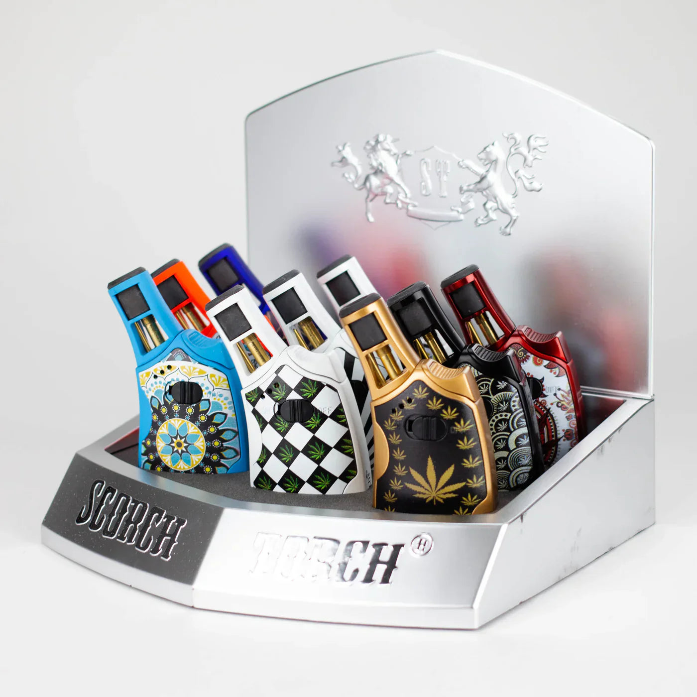 9x Scorch Torch – Mandala Leaf Designs Single Flame Torch Lighter (Display Pack)