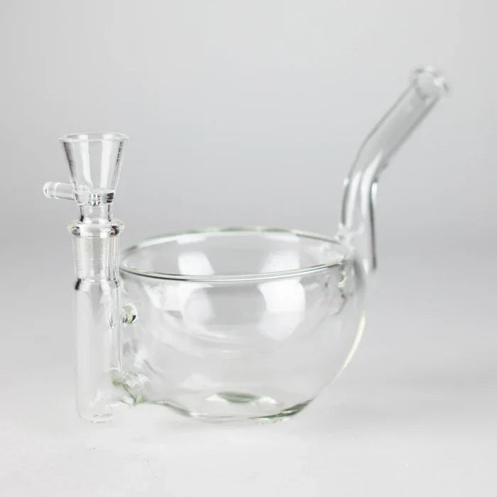 The Clear Katora Water Pipe - Unique Bowl-Style Design with 14mm Joint combines traditional bowl-inspired aesthetics with modern filtration in a compact, all-clear borosilicate form for smooth, cool hits and visual simplicity.