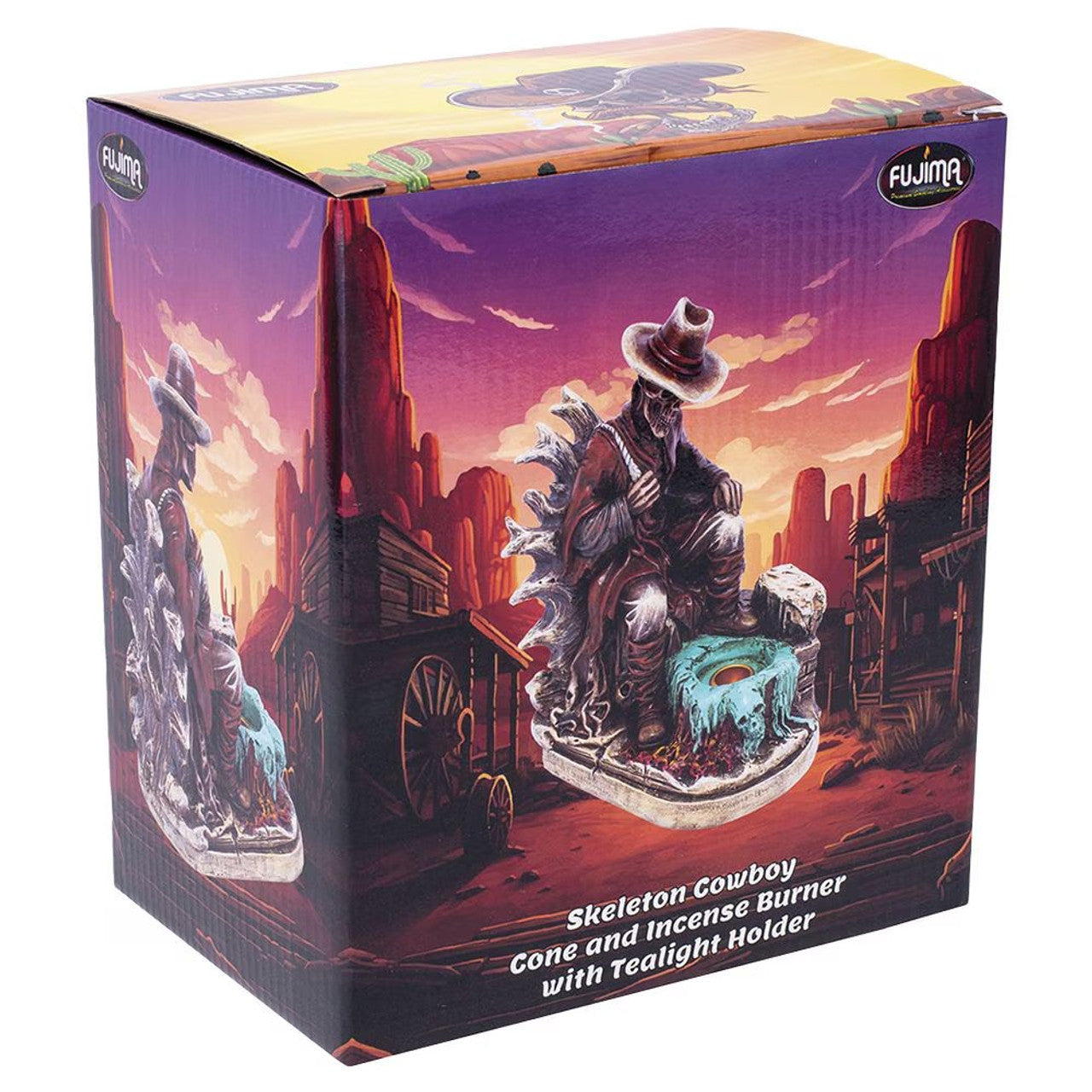 The Fujima 8.25″ Skeleton Cowboy Polyresin Incense or Tealight Holder is a quirky, macabre home decor piece that blends Wild West mystique with gothic flair, perfectly suited for burning incense sticks or holding tealights.