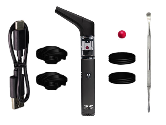 The Utillian 6 Dab Pen has 4 temperature settings to find the perfect spot to vaporize your cannabis wax only. This new design has vortex airflow, a bottom-heated glass bucket chamber and a discreet compartment for wax. Inside is a large 1500mAh internal battery and has a single button control. The temperature range for this device is between 235°C to 295°C. Included is a ruby terp pearl for a more dynamic airflow.