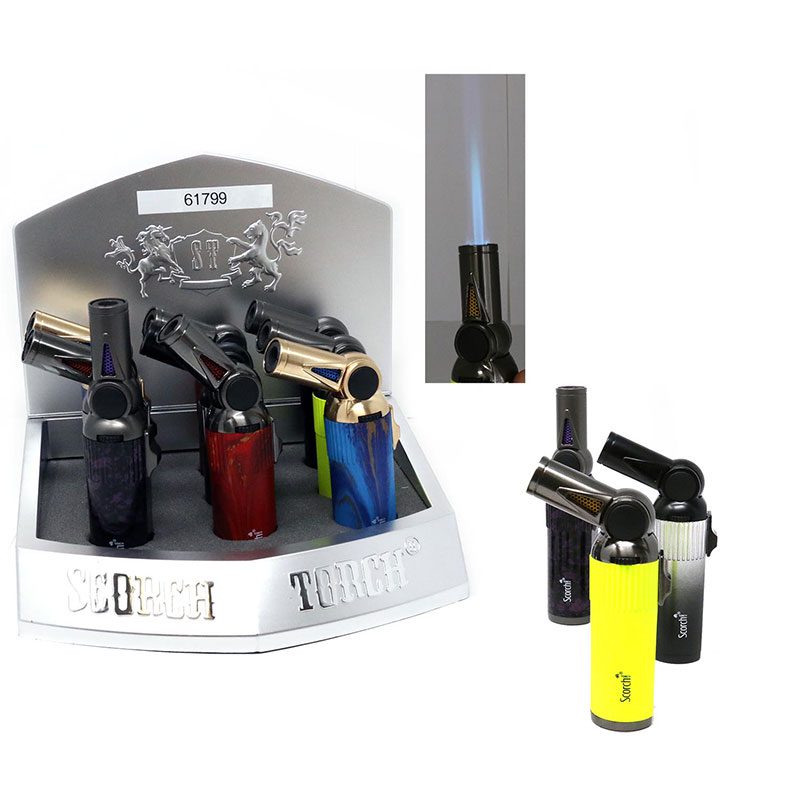 The Scorch Torch – Bendable Angle Turbo Torch features a flexible bendable neck for precise flame control in hard-to-reach areas. Designed with a powerful turbo flame, this torch lighter offers durability and versatility for various lighting needs.