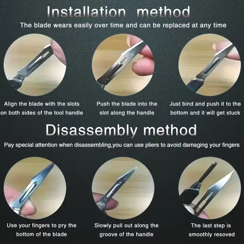 23-Piece Utility Knife Set with Carbon Steel Blades is a compact, professional-grade knife set designed for clean, precise cutting in art, crafts, model building, and detailed hobby work. This kit includes two durable stainless steel handles and a selection of sharp carbon-steel spear-point blades, all neatly stored in a sturdy iron case.