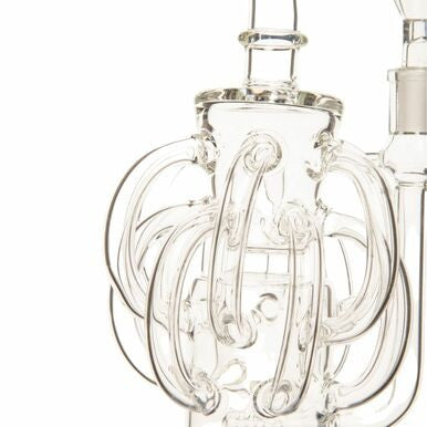 10" 5mm Hexa Trigon Recycler Glass Rig is a one of a kind rig that's sure to turn heads! It's intricate glass work looks amazing when you're pulling smoke through the maze of glass tubing. This center piece worthy rig is truly impressive!