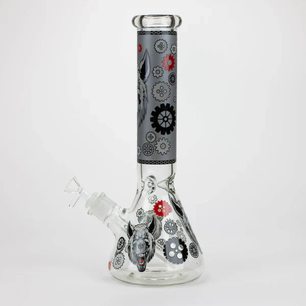 The 13.5" JJ Wolf Glow in the Dark Water Bong, a premium borosilicate glass water pipe that stands tall at 13.5 inches with a thick 7mm glass construction, ensuring durability and longevity. Its height and stable 5.5-inch diameter base make it a statement piece in any setting. The tube's generous 2-inch diameter ensures smooth airflow, while the 3 pinched ice catcher cools and smooths out each hit. The thick bowl is designed for 14mm female joints, and the glow-in-the-dark accents add an extra touch of style. The efficient 6-inch downstem give optimal airflow and diffusion.